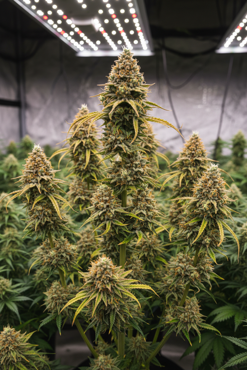 - Ertrag: Sehr hoch – dichte, extrem harzige Buds mit intensivem Aroma